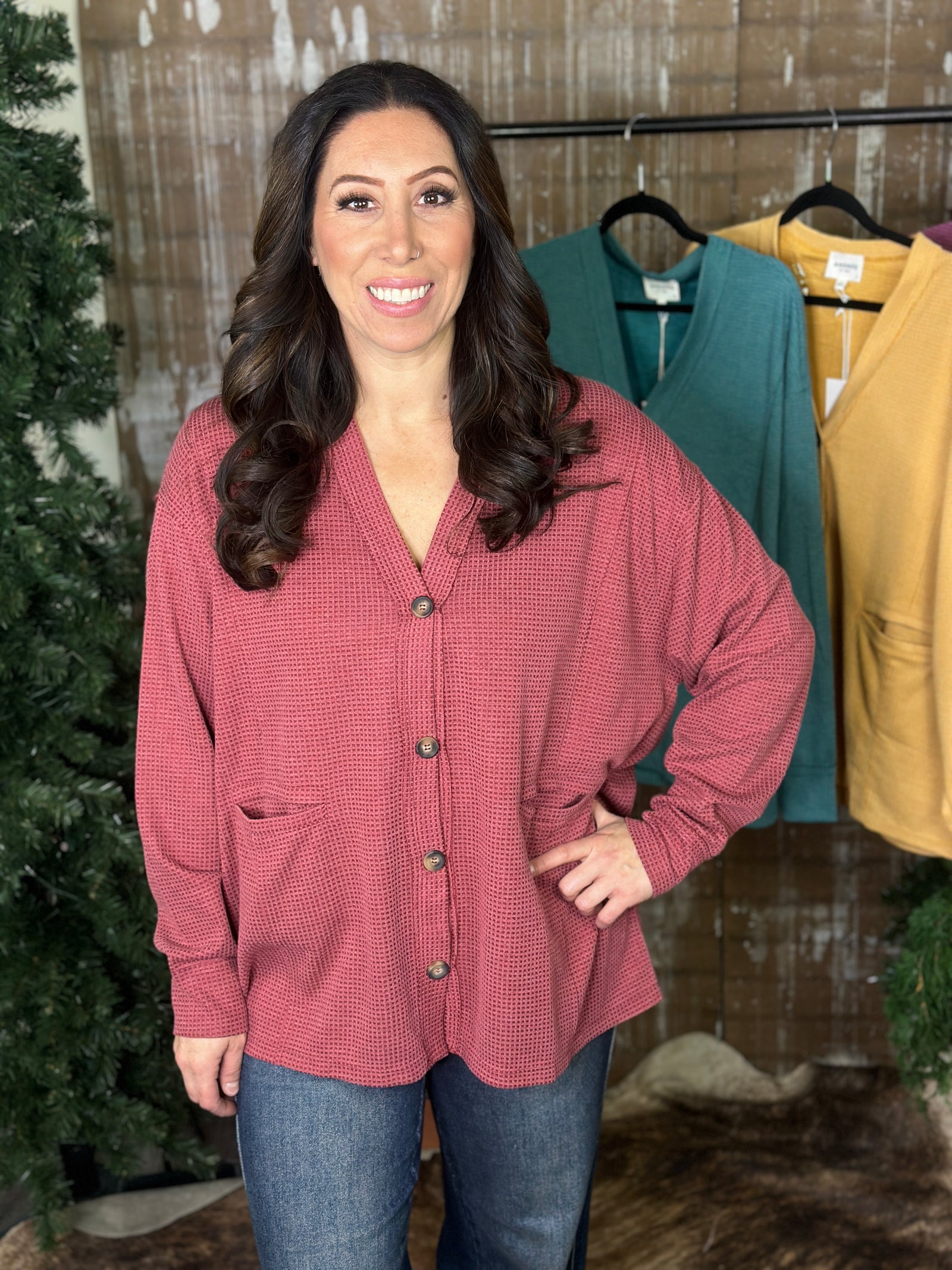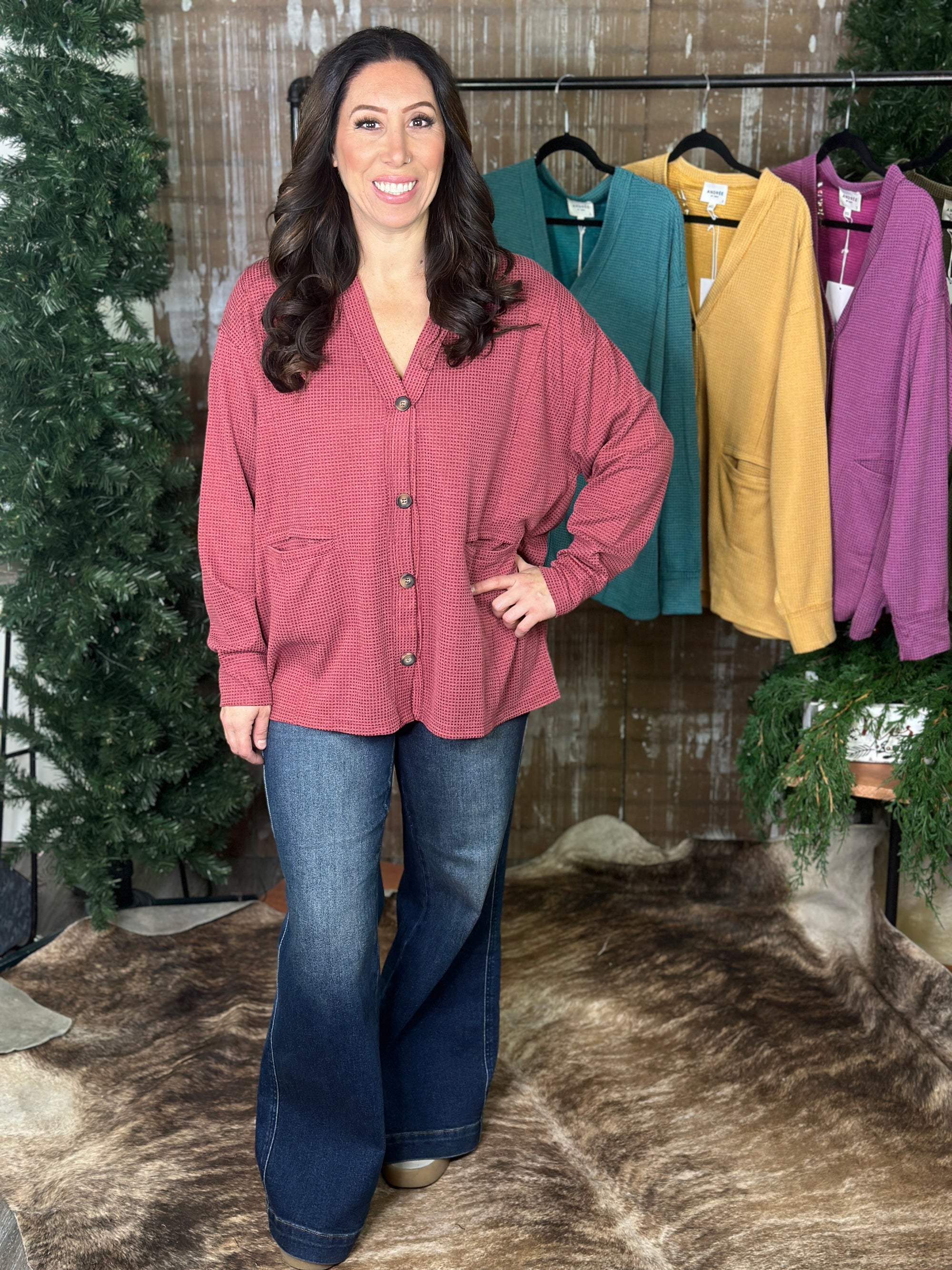 DOORCRASHER - Waffle Button Up Top - Wine - FINAL SALE $29.00 CAD