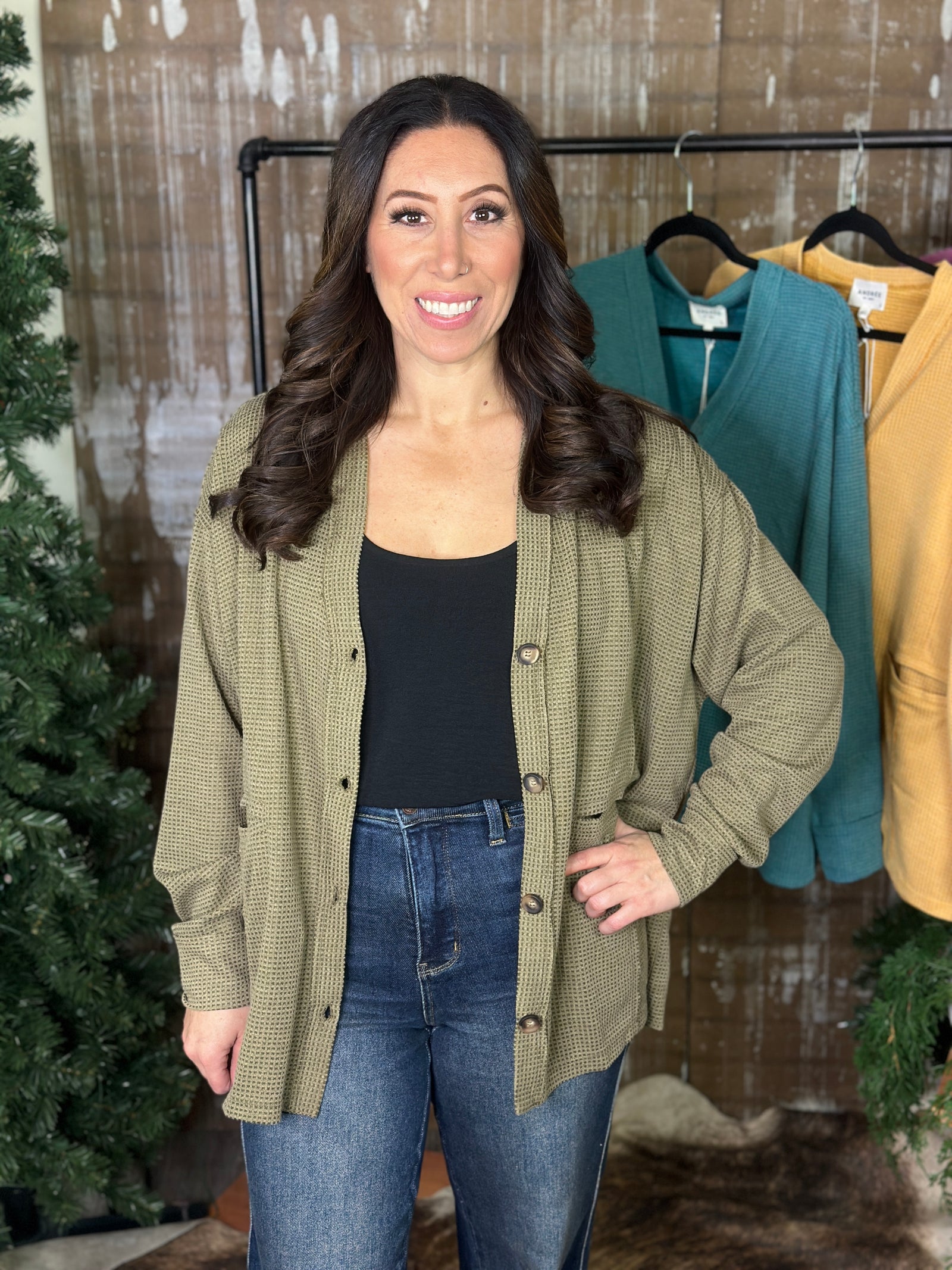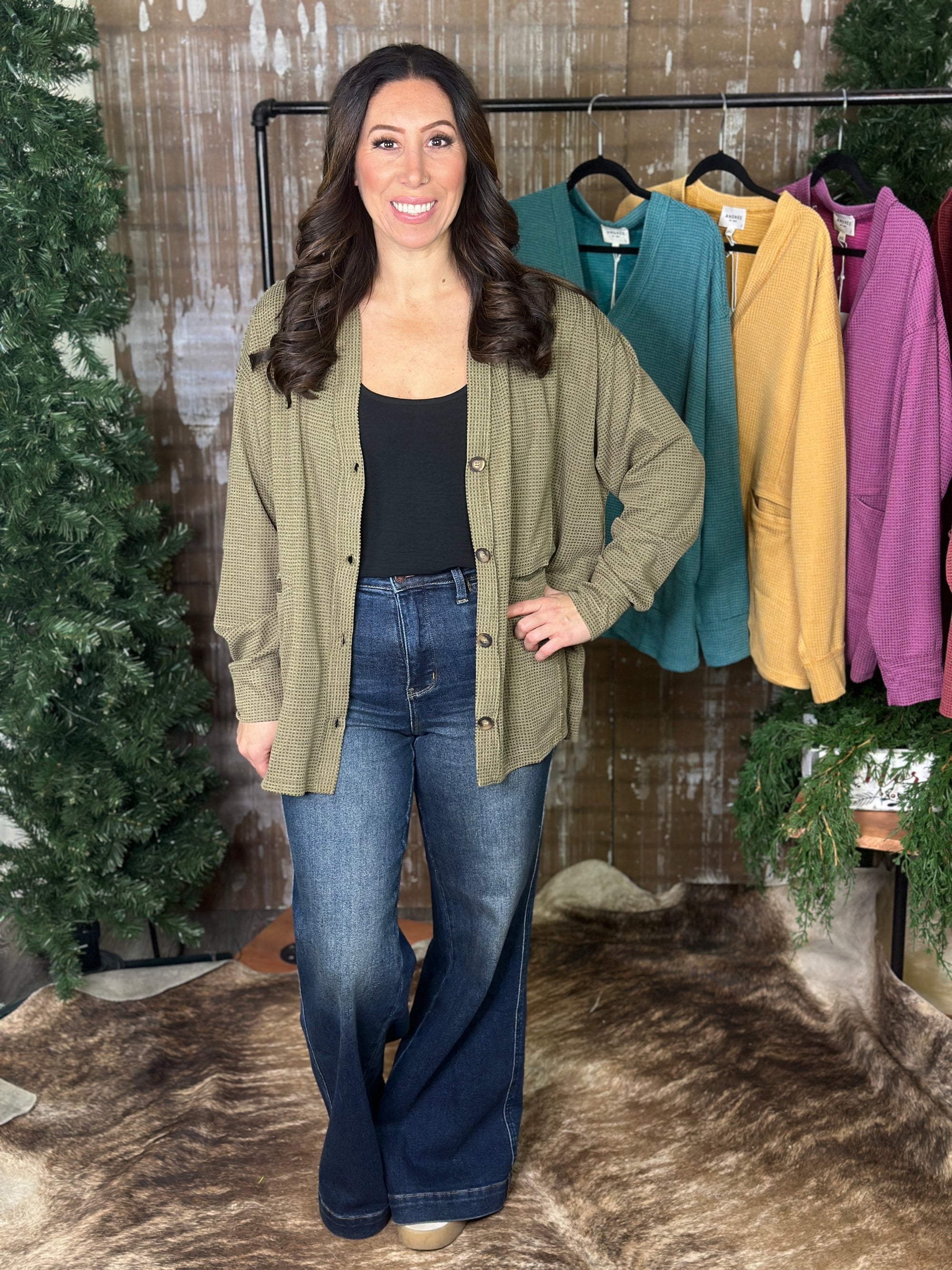 DOORCRASHER - Waffle Button Up Top - Olive - FINAL SALE $29.00 CAD
