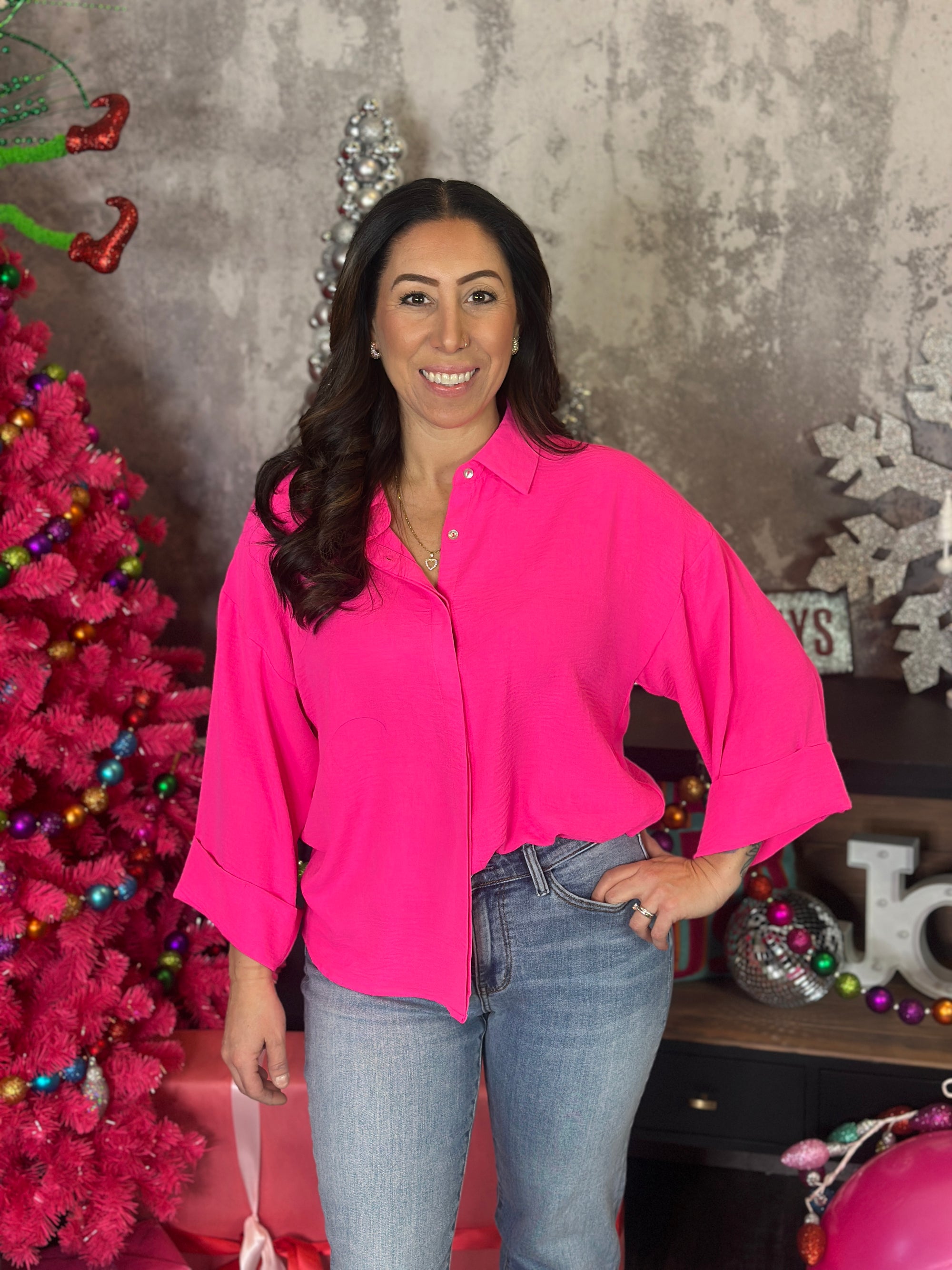 DOORCRASHER - Waffle Button Up Top - Magenta - FINAL SALE $29.00 CAD