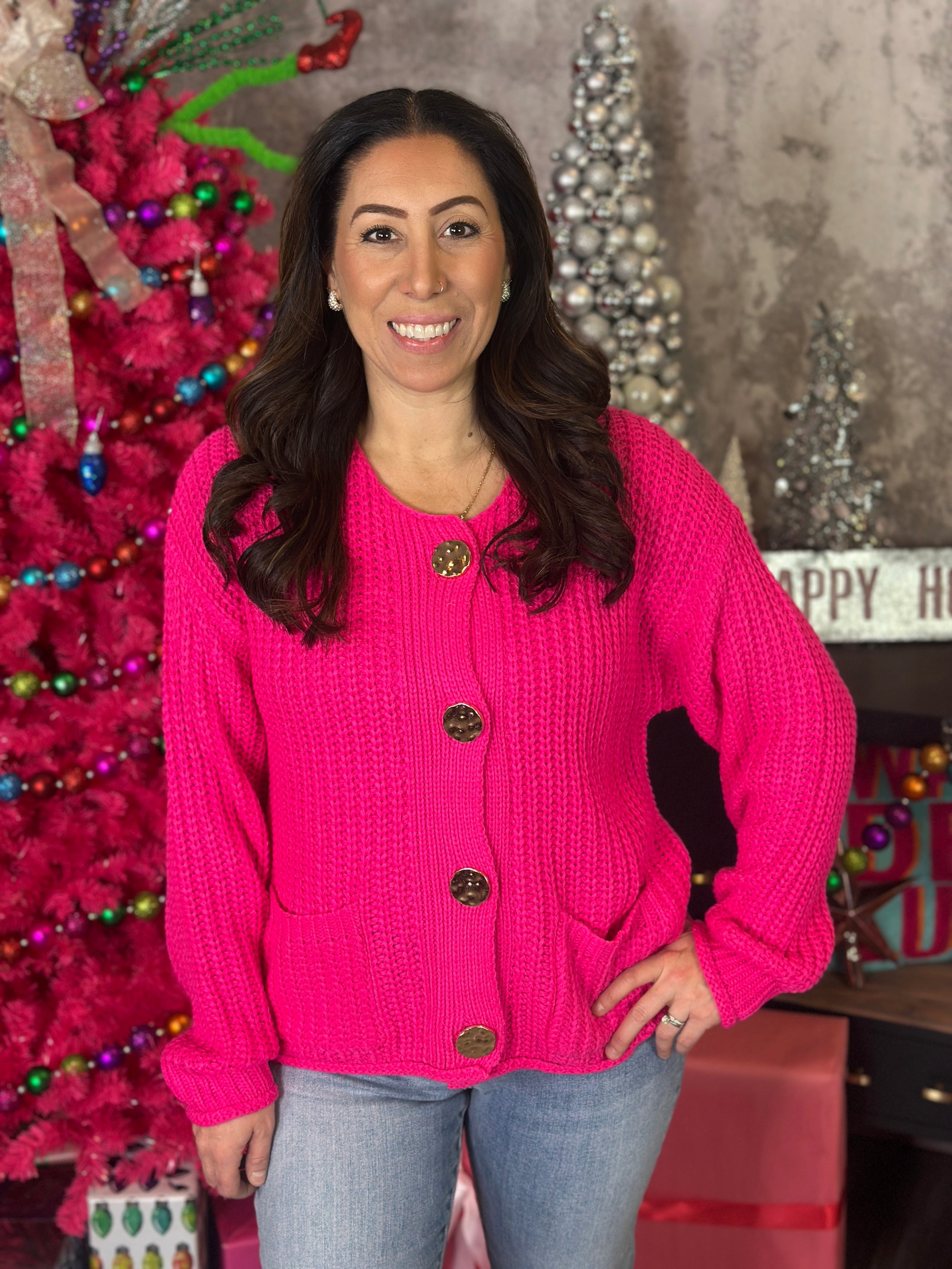 Gold Button Chunky Sweater - Pink $92.00 CAD