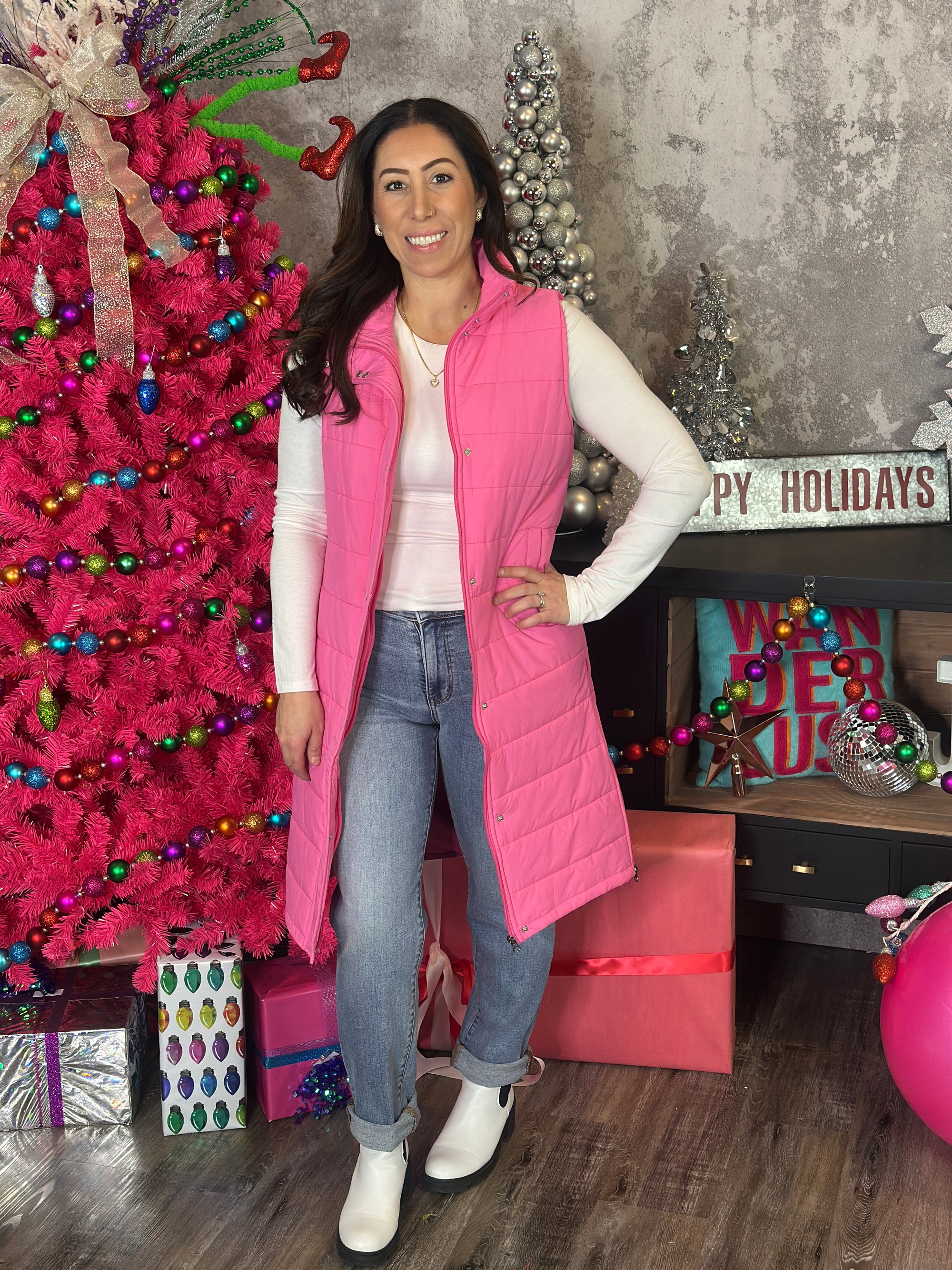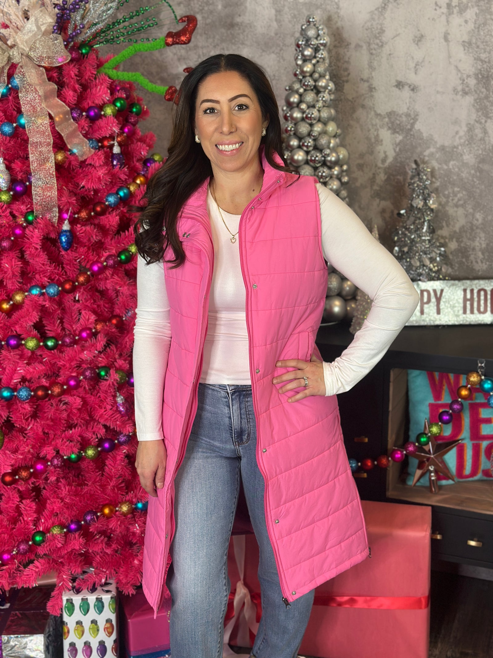 Long Pink Puffer Vest (Small - 3X) lnew-releasesouterwear