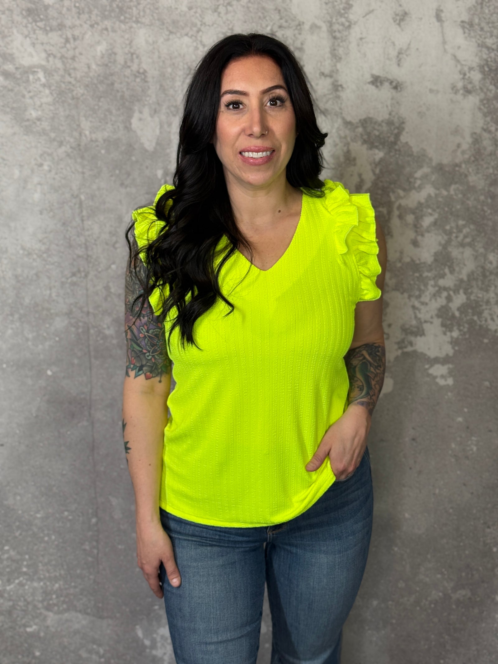 Highlighter Yellow Textured Ruffle Tank lmnew-releasesstopsxl