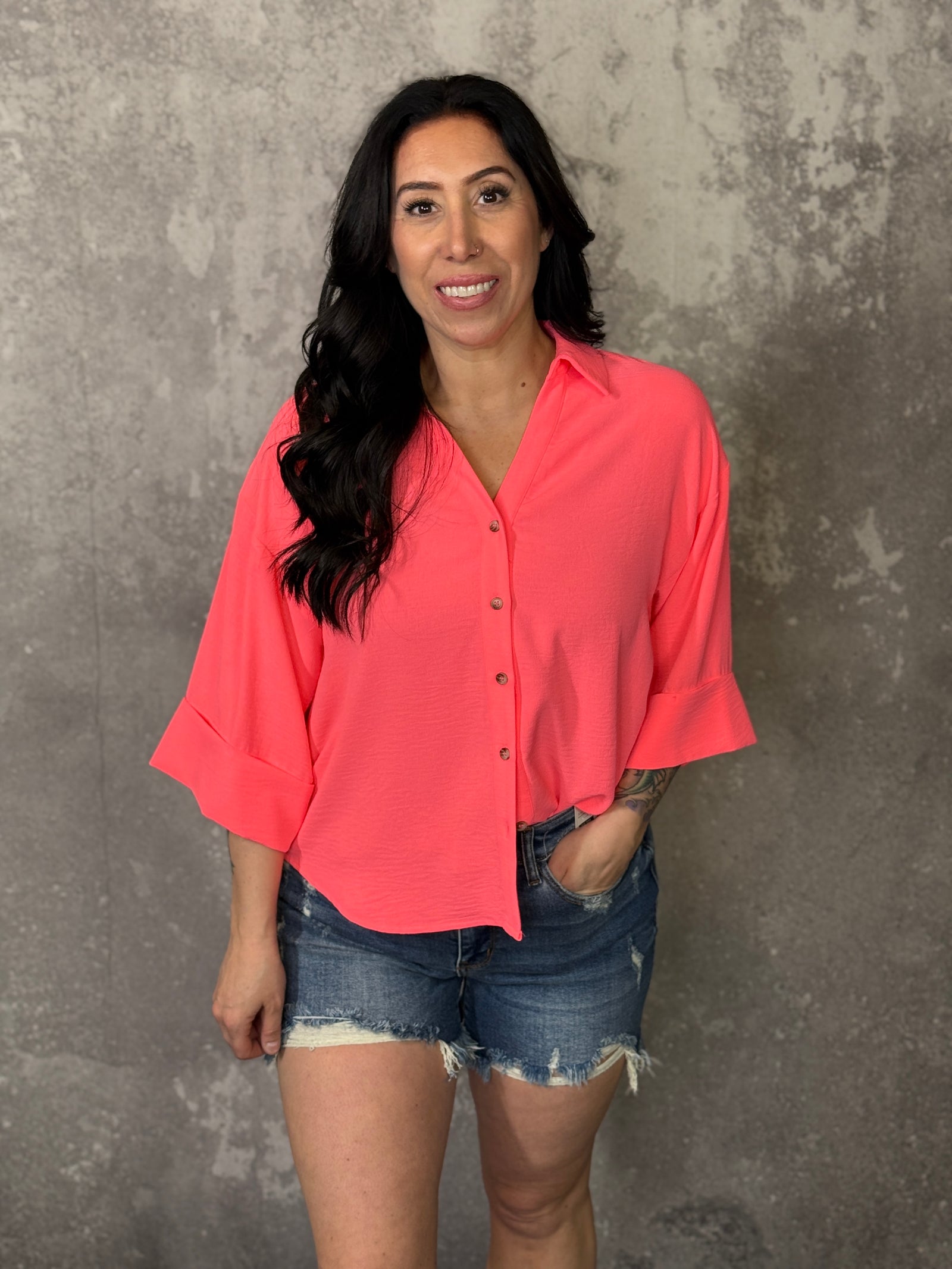 Wide 3/4 Sleeve Airflow Top - Neon Coral $68.00 CAD