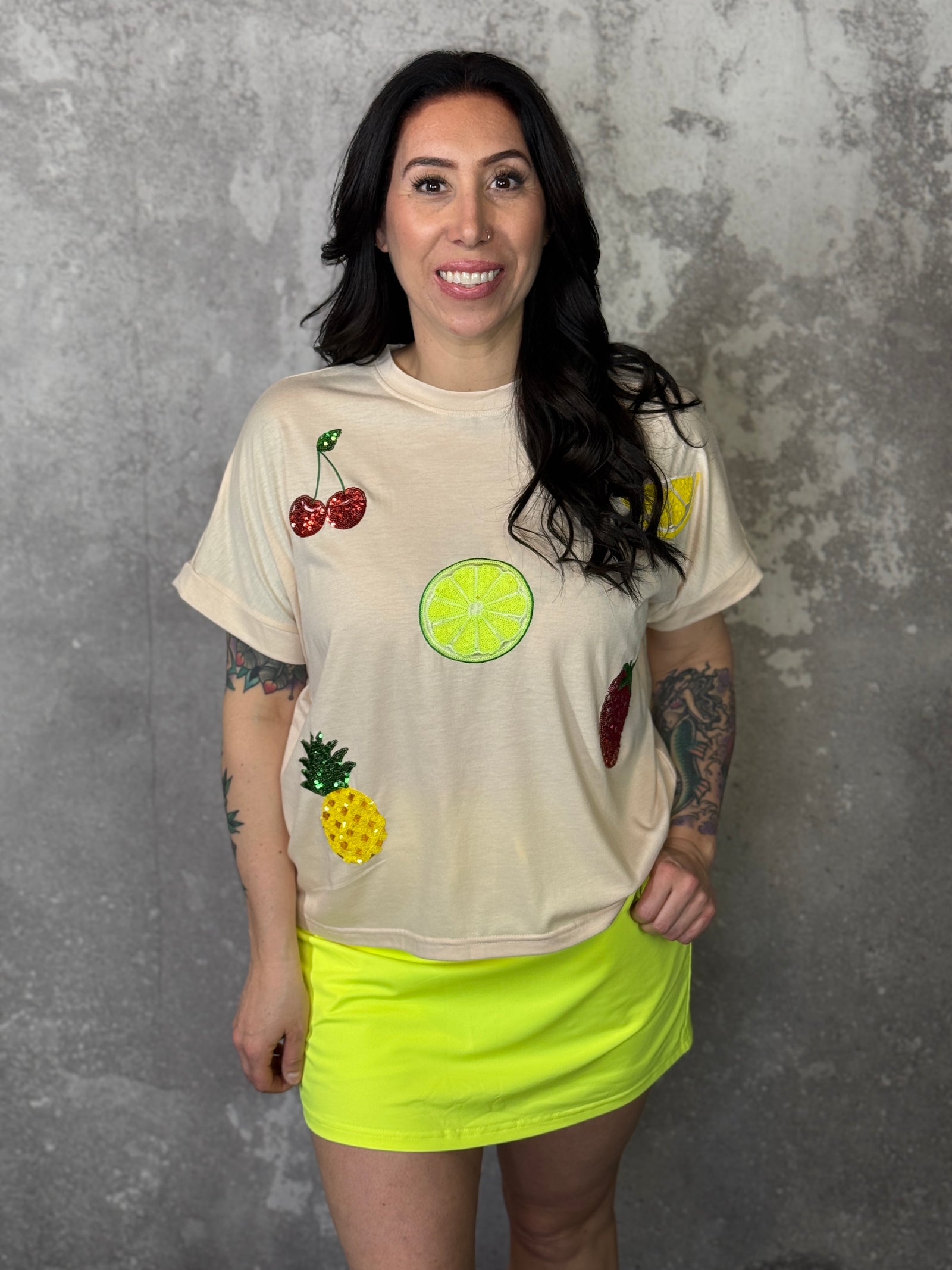 Sequin Tropical Fruit Tee (Small - 3X) $84.00 CAD