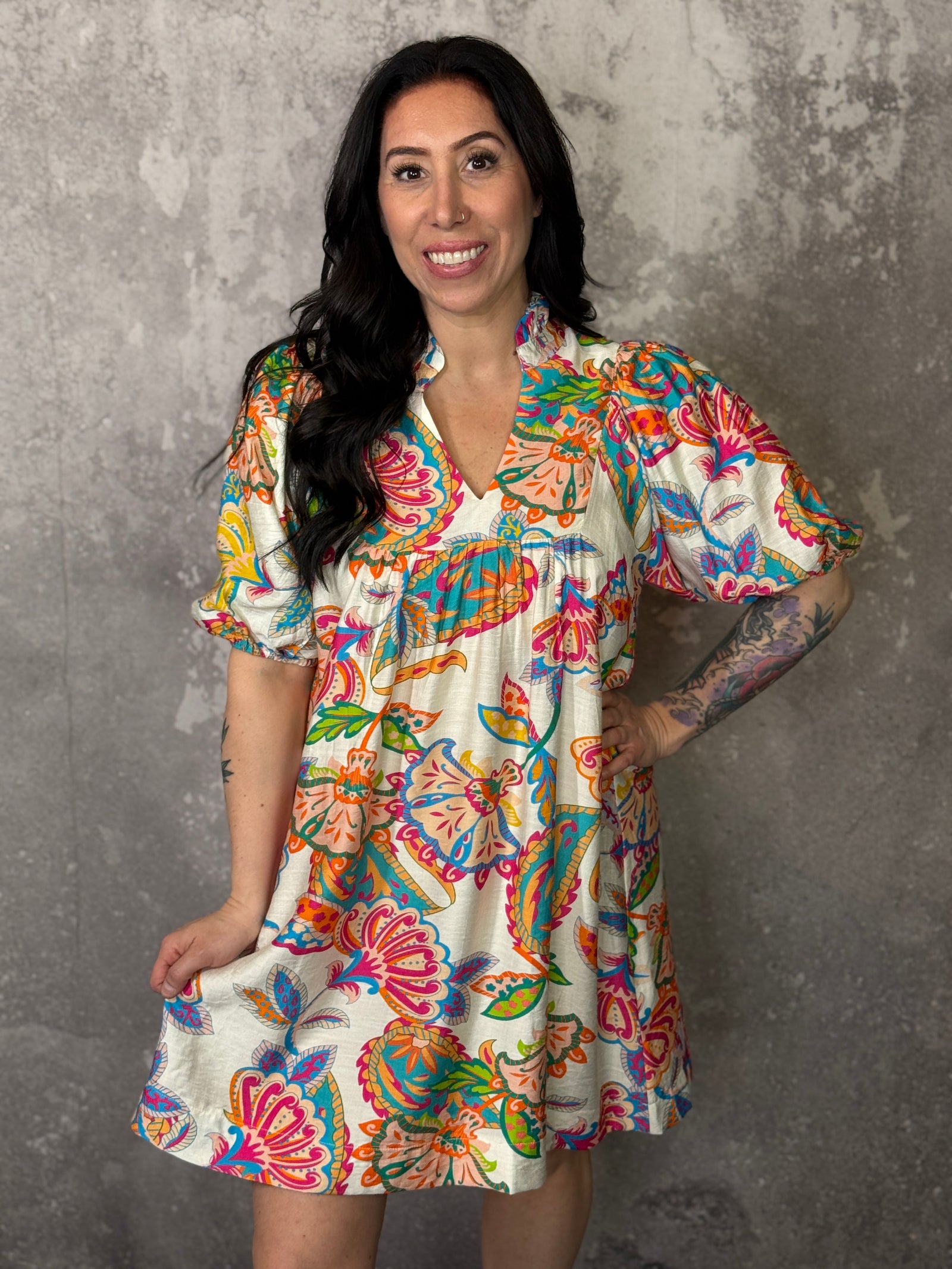 Cream Mix Floral Dress (Small - 2X) 1xl2xldresseslmnew-releasessshort-dressesxl