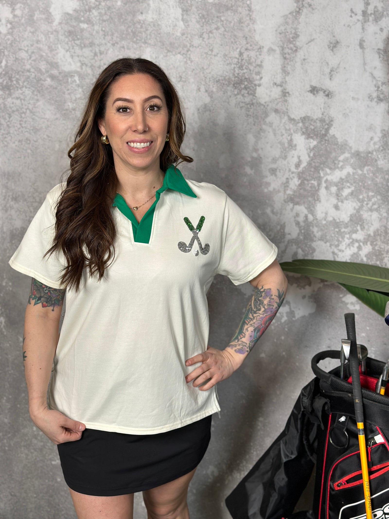Sequin Golf Club Collared Short Sleeve Sweatshirt country-clublmnew-releasesstops