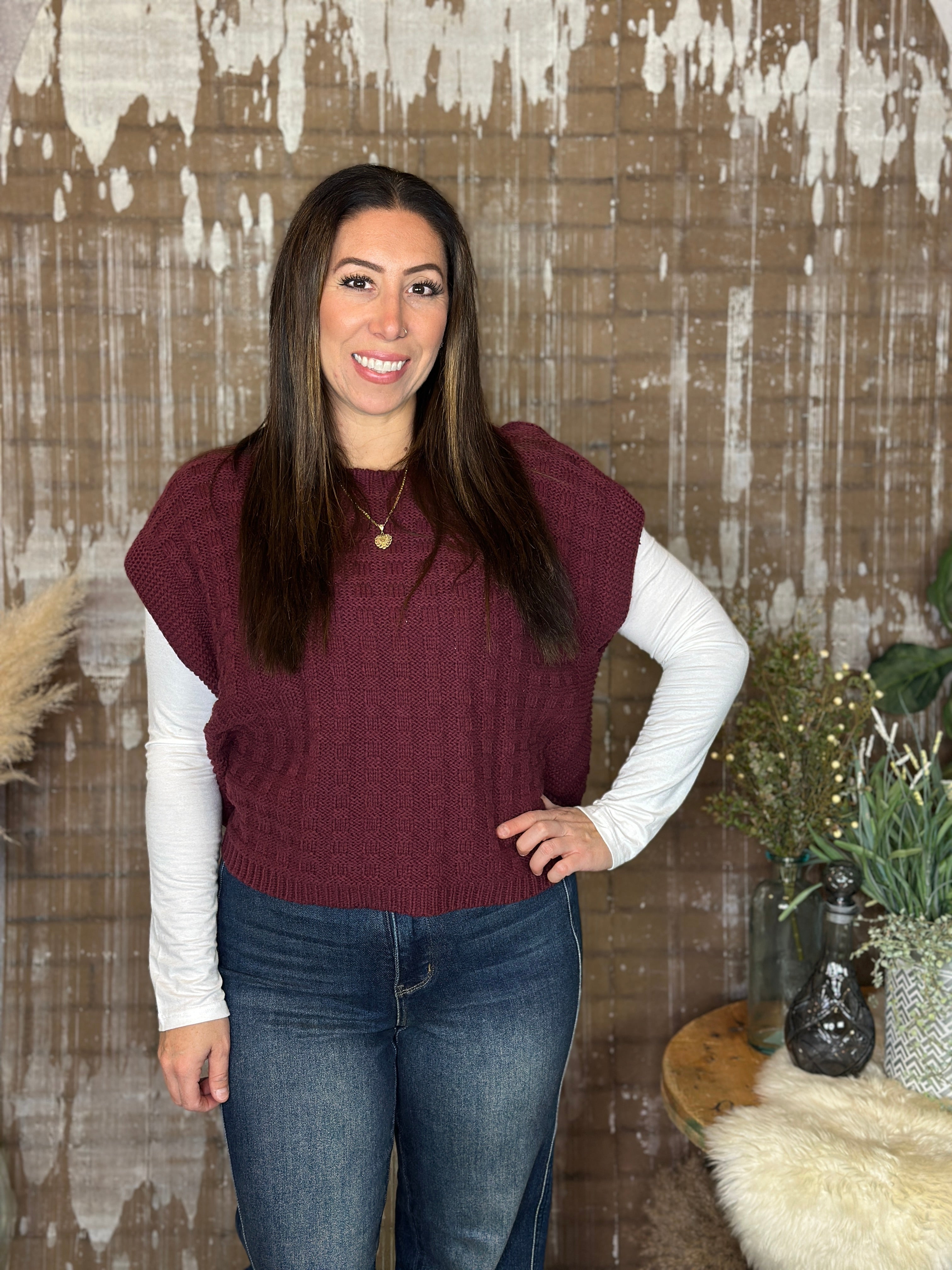 Fit: Relaxed fit sweater vest with basket weave detail.