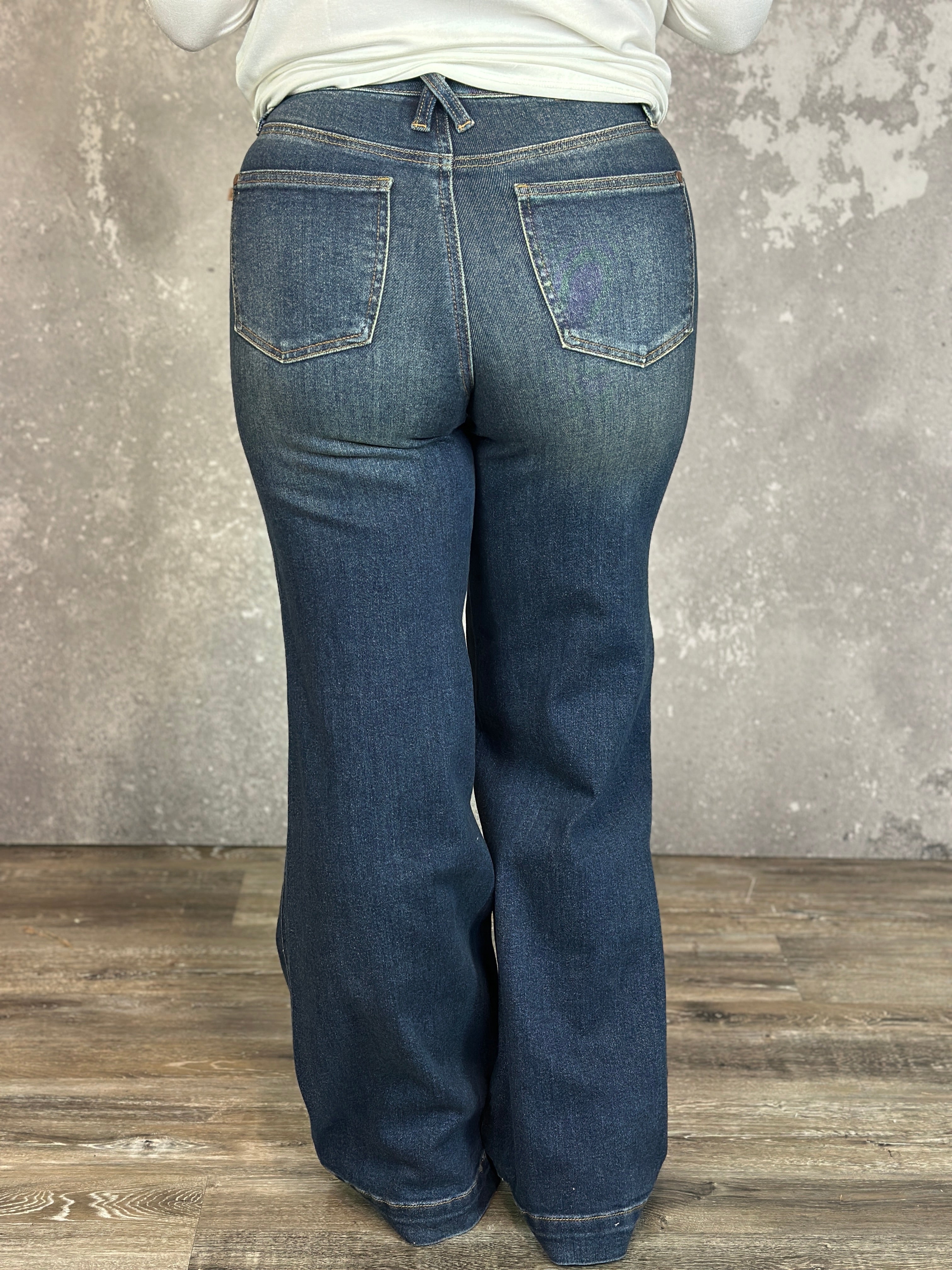 Fit: These Judy Blue high-rise wide leg jeans come in a dark indigo wash with gentle fading for dimension. Relaxed from hip to hem, they offer a modern, polished look that’s as versatile as it is comfortable.