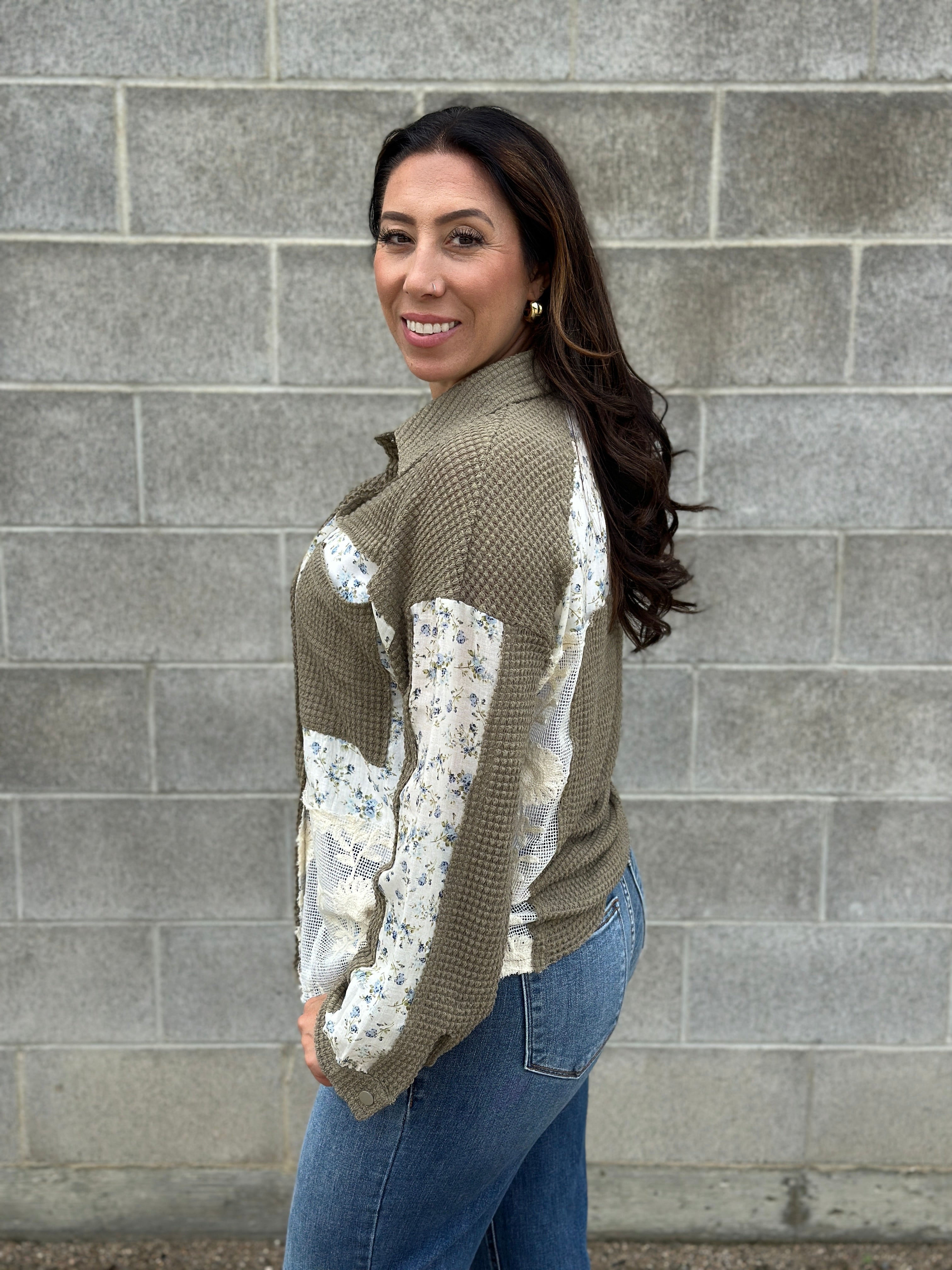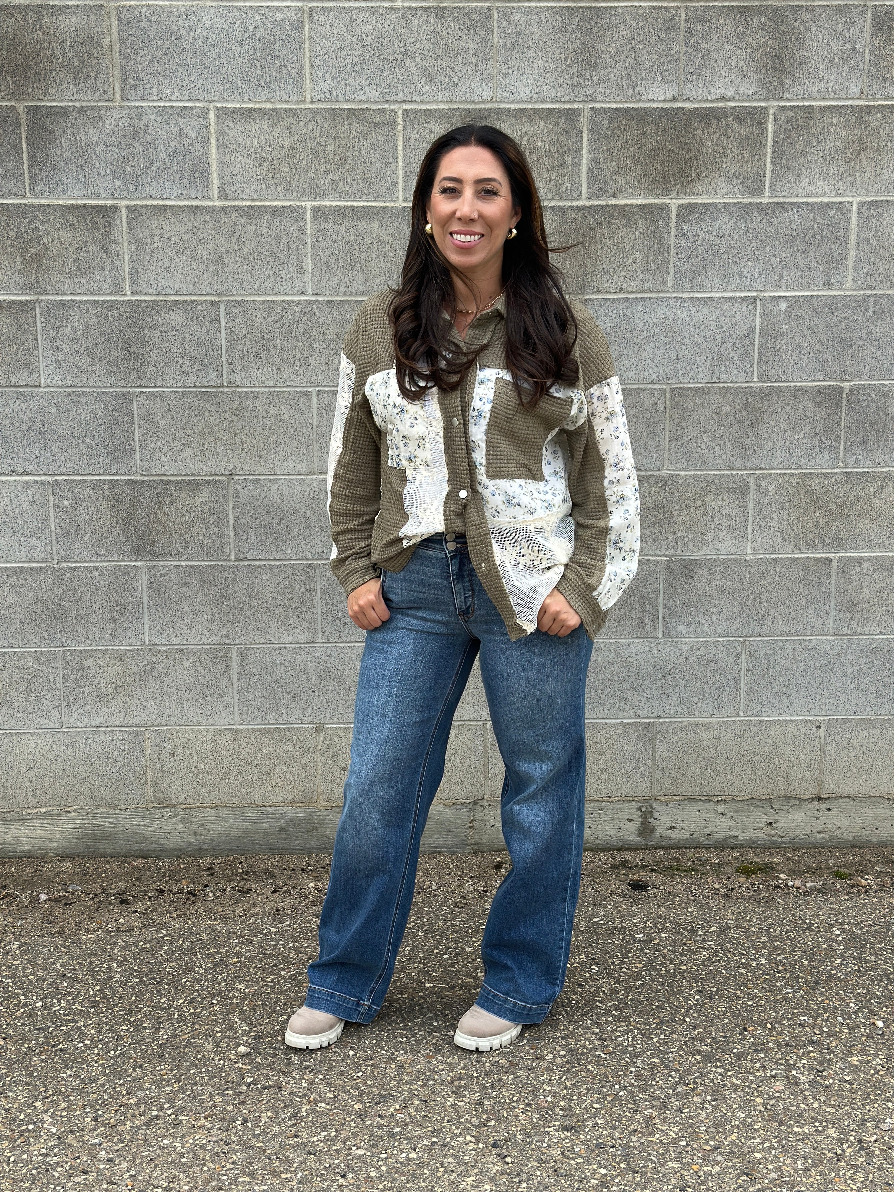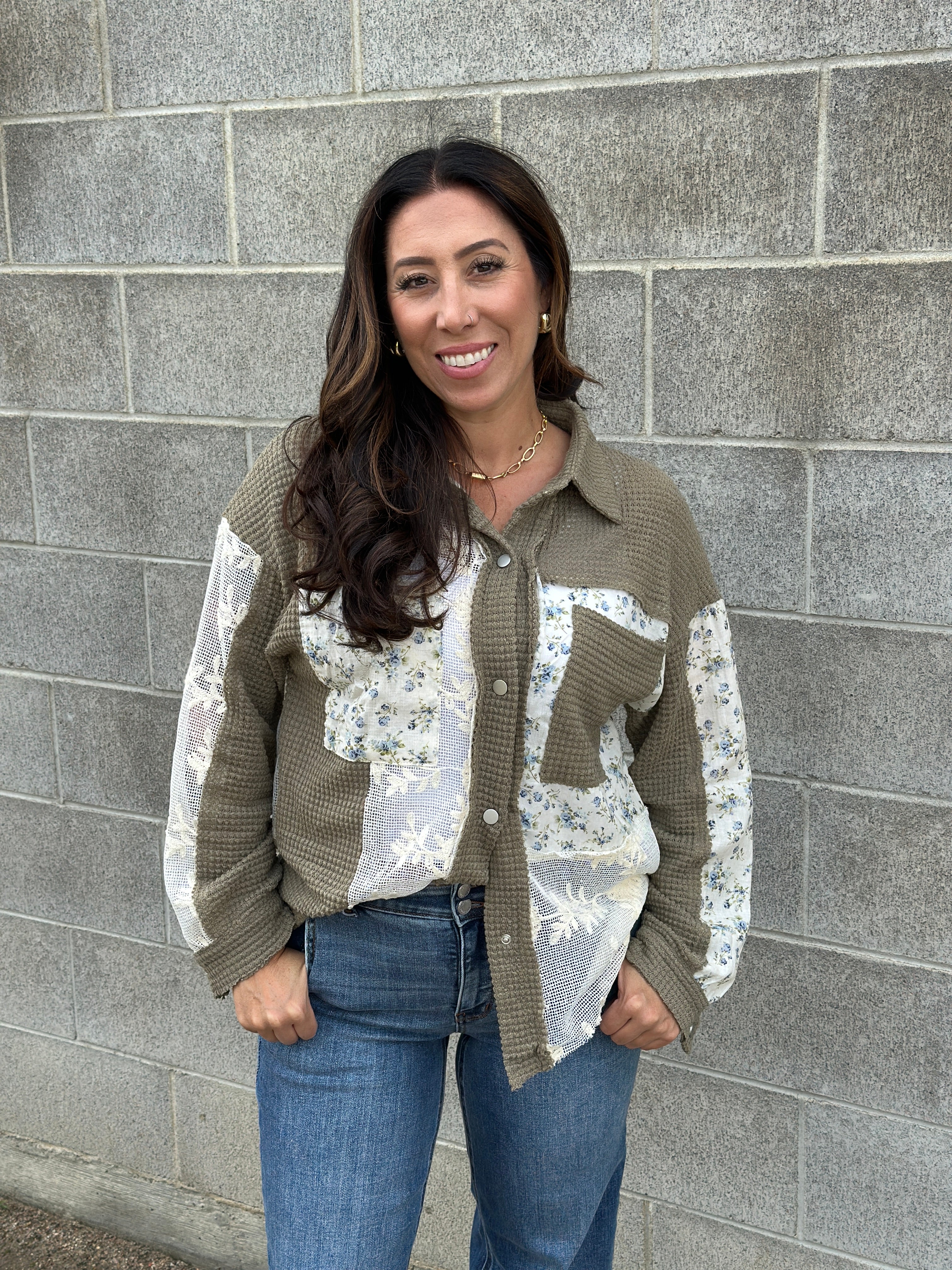 Relaxed light weight shacket/top. Functional snap buttons and collar.
