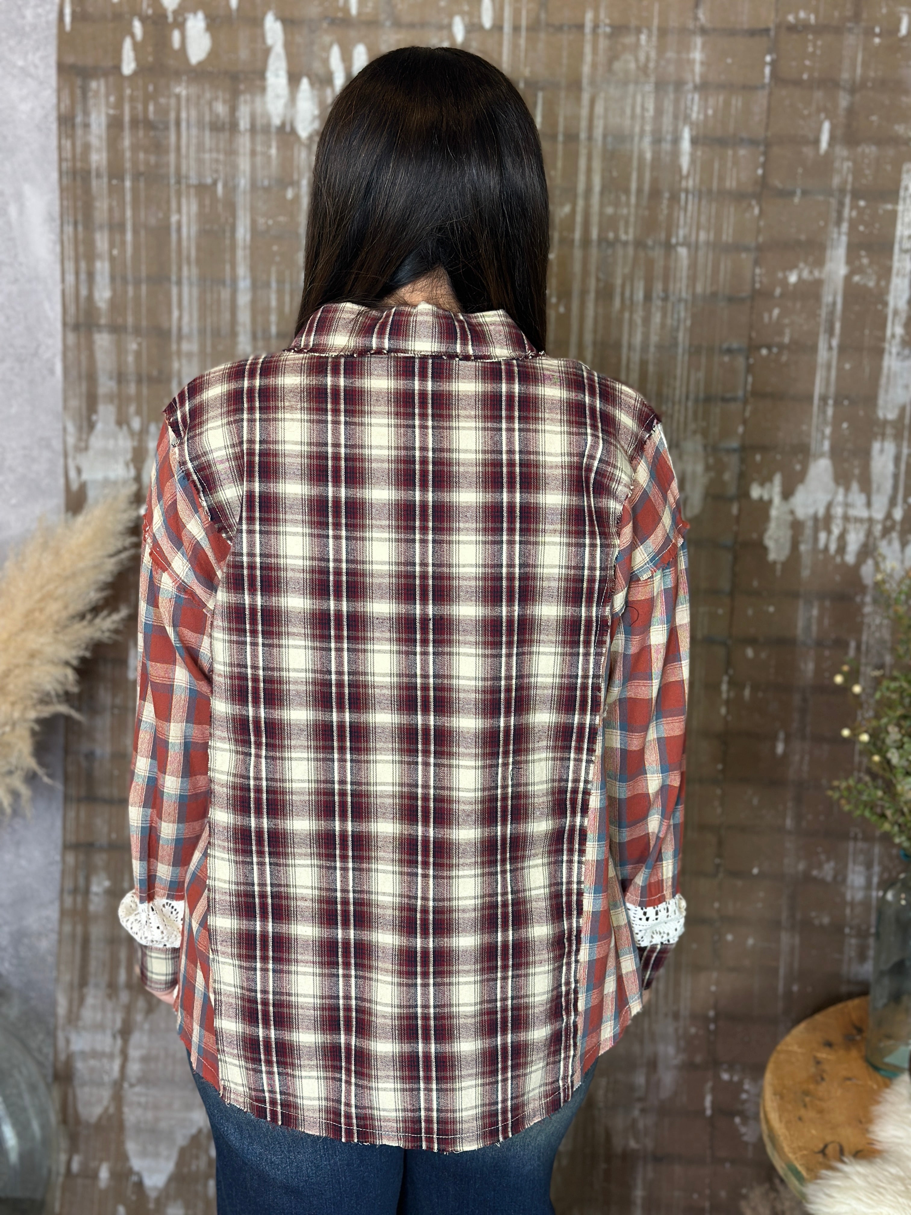 Fit: A relaxed plaid button up top.