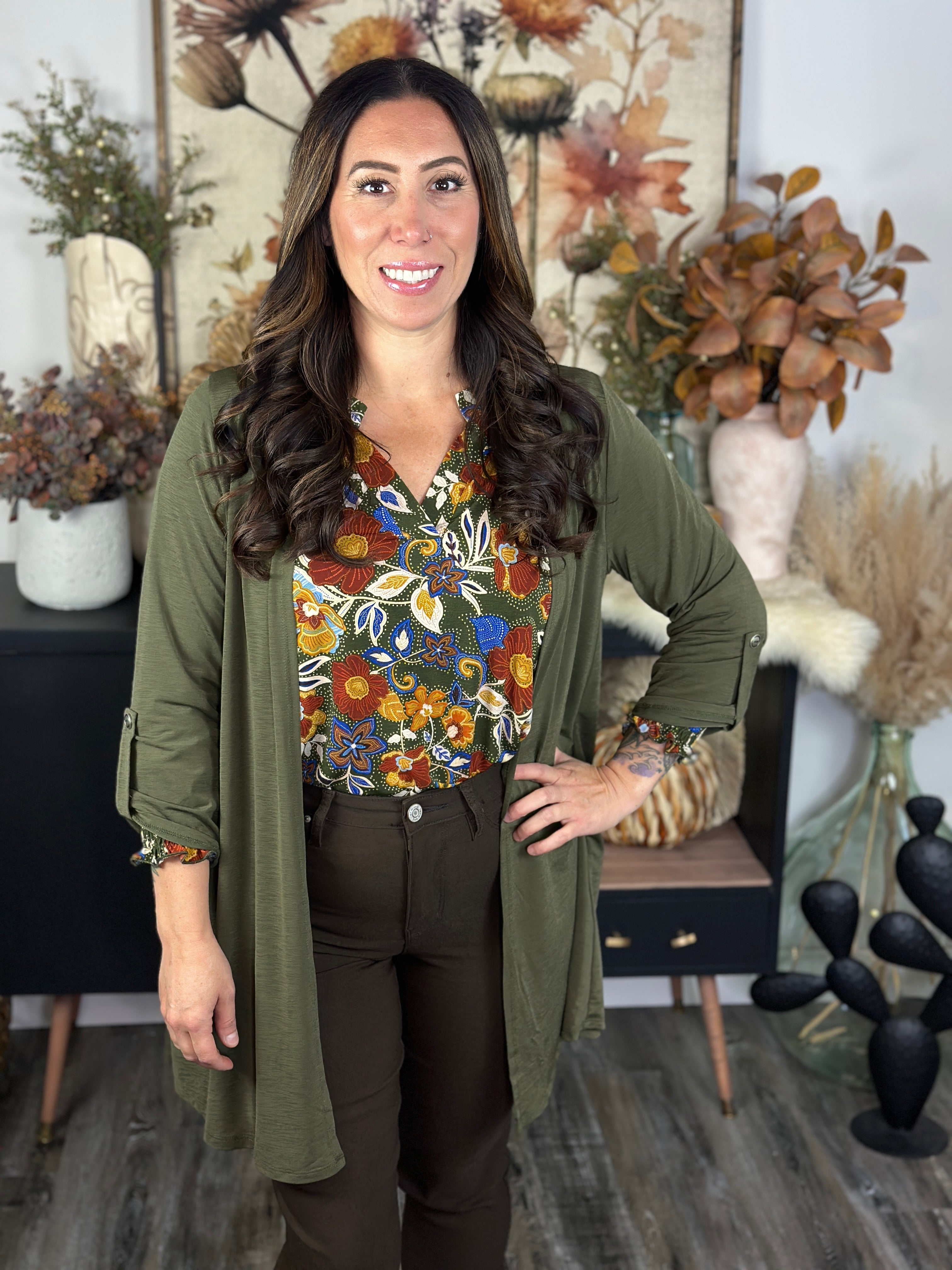 Fit: 3/4 Sleeve wrinkle free cardigan with pocket. Relaxed fit. Could size down for a more fitted look.