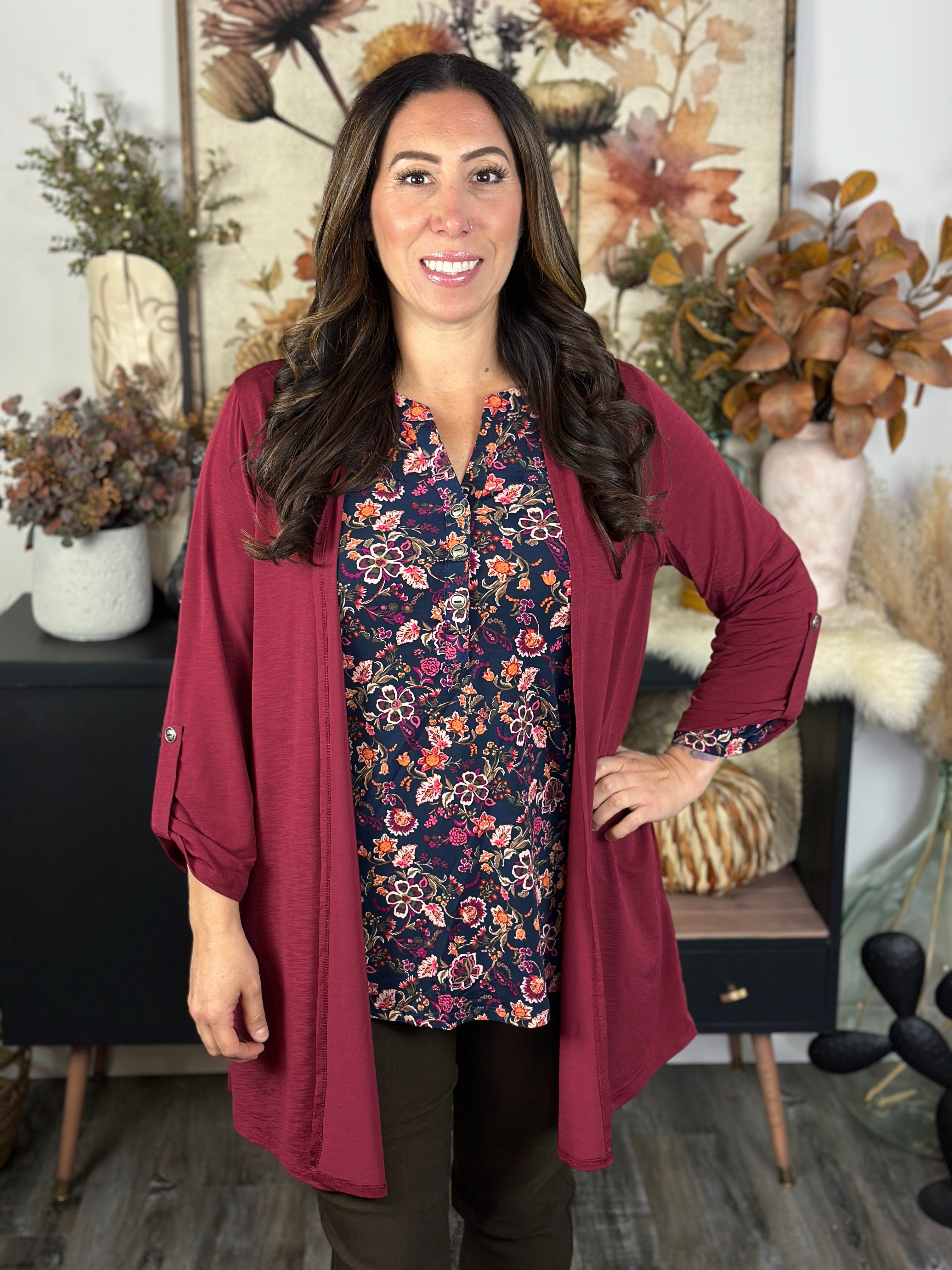 Wrinkle Free Cardigan - Cranberry