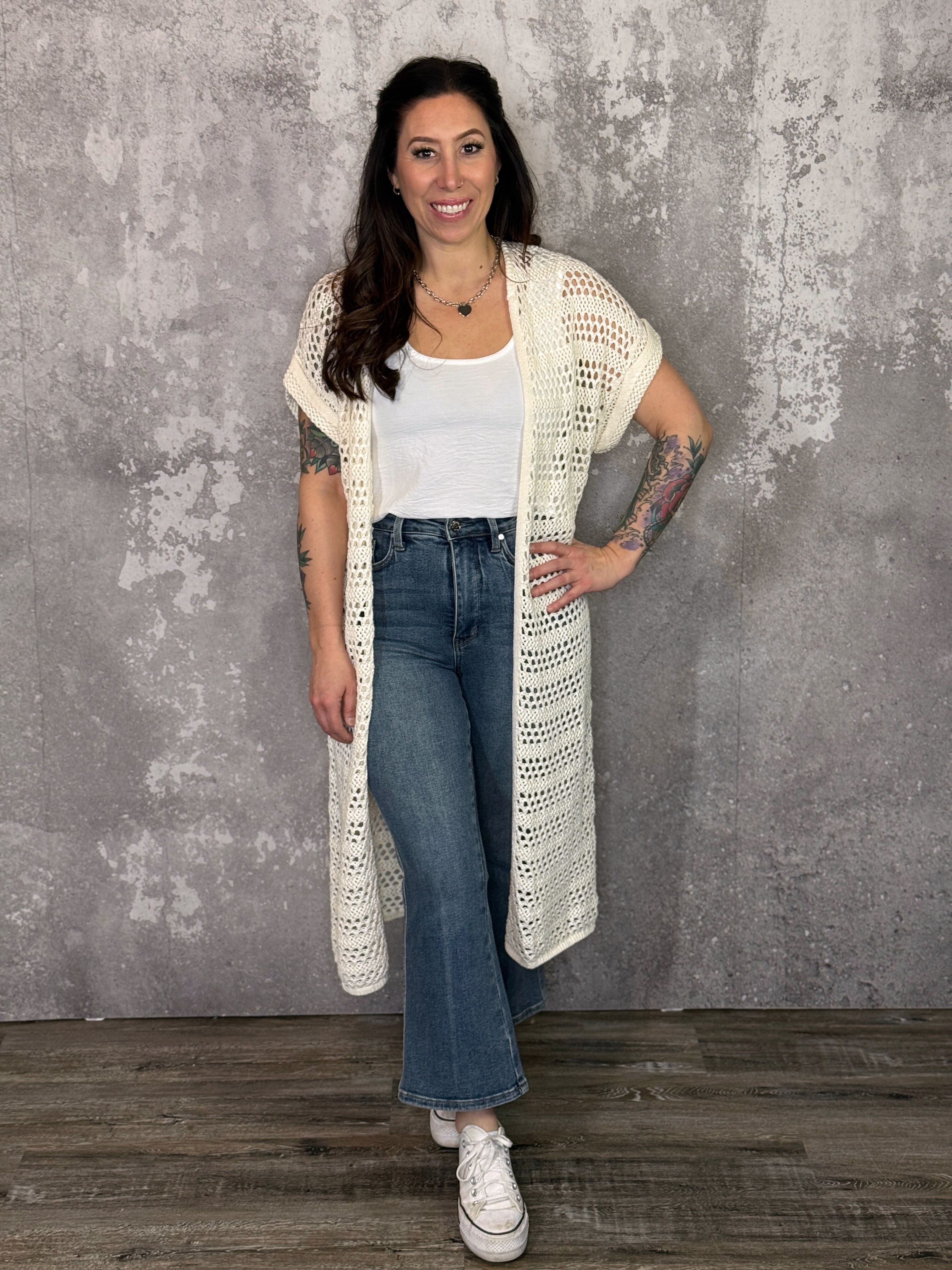 A relaxed true to size knit cardigan.
