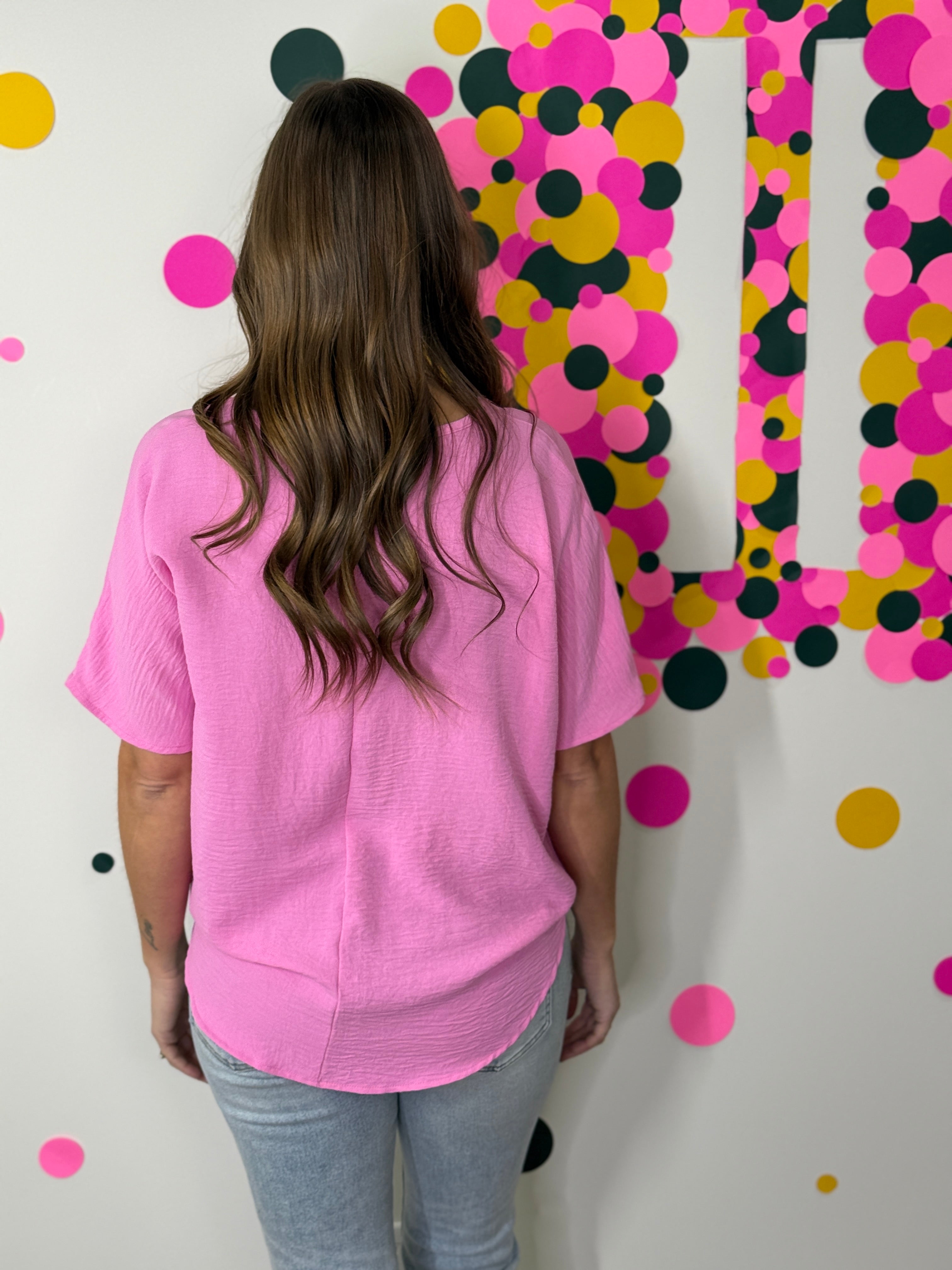 Fit: A relaxed airflow top with vneck. Easy breezy basic.