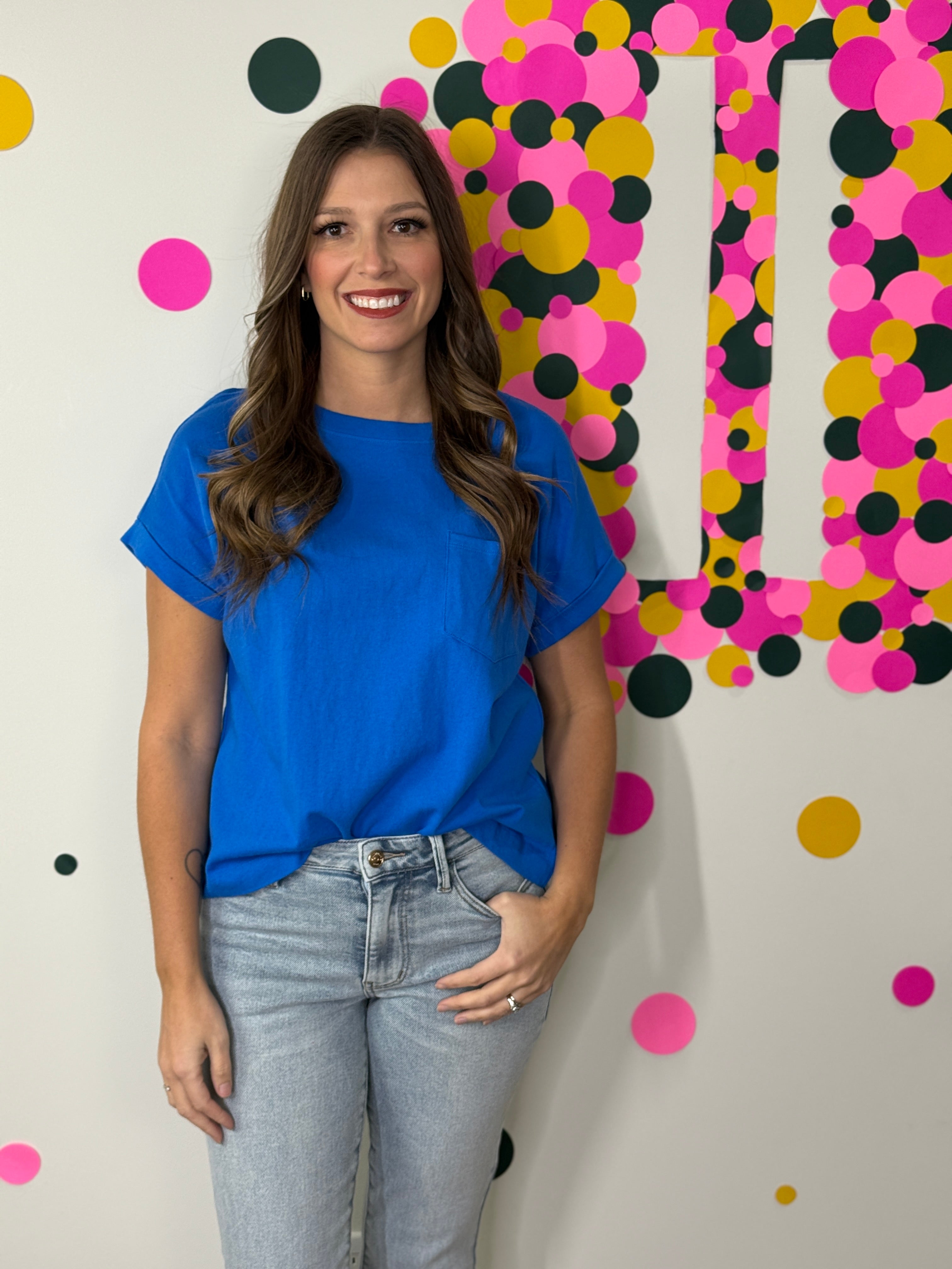 Fit: A true to size cotton tee with chest pocket, rolled sleeves and rounded neckline.