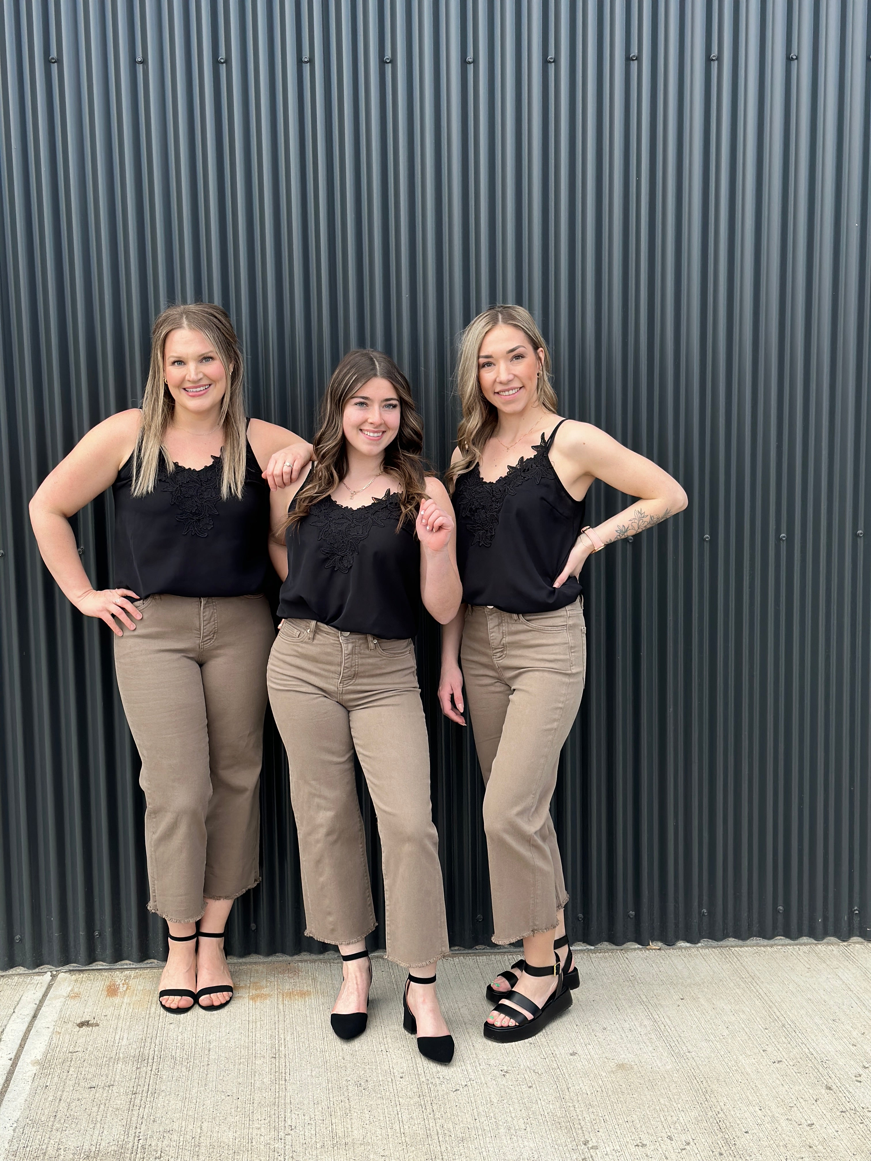A high waist, tummy control garment dyed denim crop. With that same Judy Blue stretch that we all love! We find that RFM denim fits very similar to Judy Blue. The Chloe is a wide leg non distressed jean with a small bottom frey.