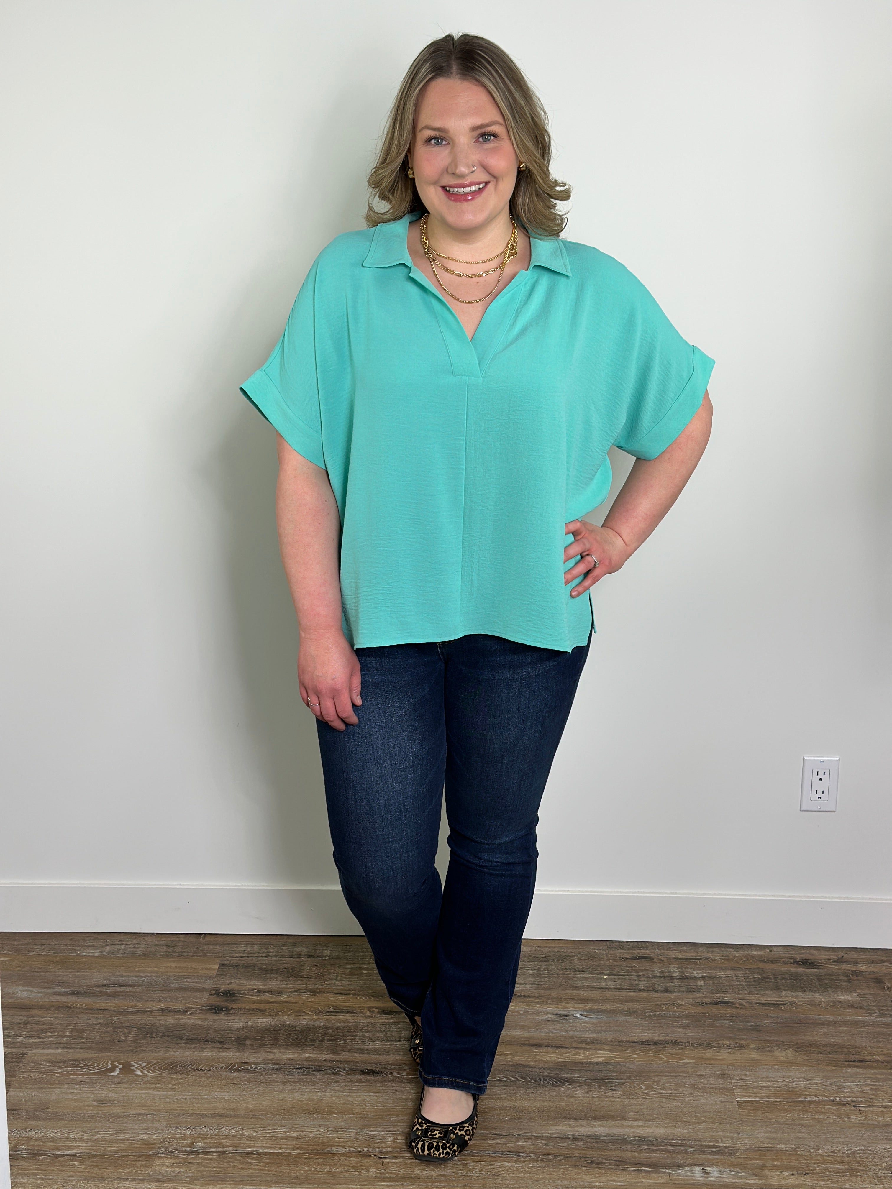 Fit: Relaxed fit. Could size down for a more fitted look. Featuring a collar and short sleeves.
