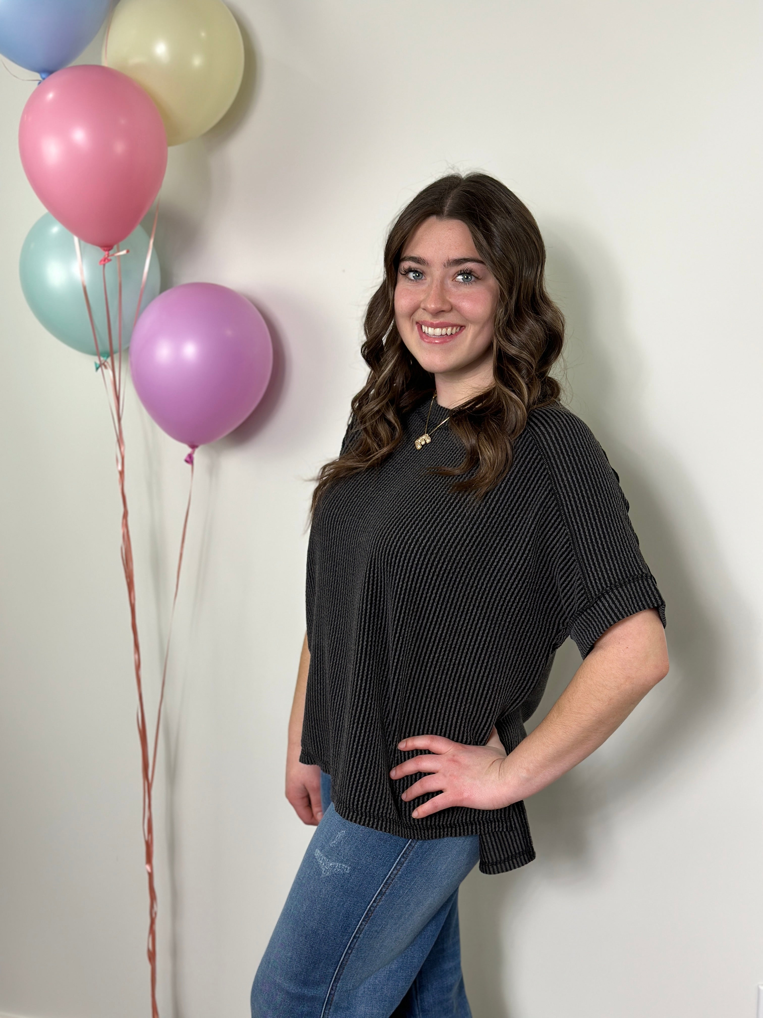 Soft Ribbed Short Sleeve Roundneck Top - Charcoal (Small - 3X)